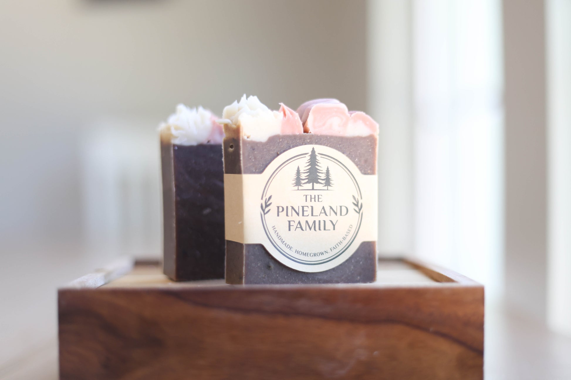 Ingredients: Olive Oil, Coconut Oil, Shea Butter, Beef Tallow, Castor Oil, Oatmeal, Beet Juice Powder, Rose Clay, French Pink Clay, Cocoa Powder, Cinnamon Leaf Essential Oil, Orange Essential Oil, Lavender Essential Oil, Bergamot Essential Oil, Eucalyptus Essential Oil